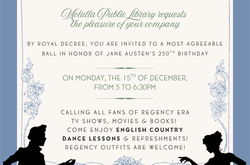 Join us on Monday, December 15th, from 5 to 6:30pm for refreshments and English Country Dance lessons!